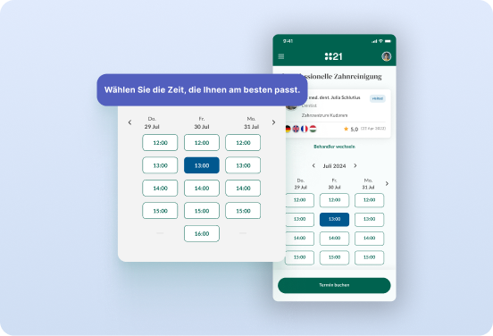 Termine buchen, umplanen oder absagen ist einfacher denn je. Wählen Sie Ihren bevorzugten Behandler und verwalten Sie Ihren Zeitplan nach Ihrem Belieben.