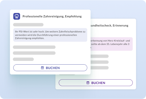 Erhalten Sie auf der Grundlage Ihrer tatsächlichen Zahngesundheitsdaten personalisierte Ratschläge. Unser Gesundheitsassistent nutzt modernste KI-Technologie, um Ihnen individuelle Empfehlungen zu geben und Ihnen zu helfen, Ihrer Mundgesundheit einen Schritt voraus zu sein.